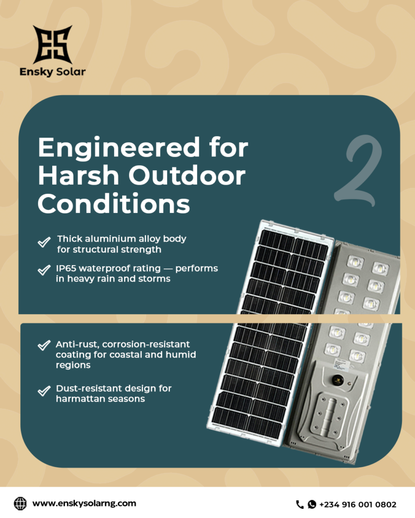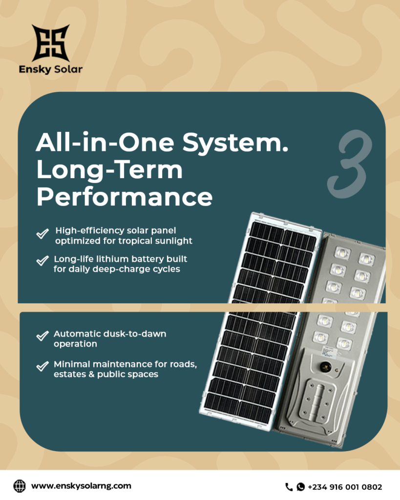 Ensky’s all-in-one solar street lighting systems are designed to deliver reliable, cost-effective, and climate-ready performance tailored specifically for Nigerian conditions.